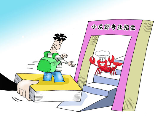 有人很疑惑,小龍蝦也是?是不是太奇葩了?仔細(xì)想一想,小龍蝦設(shè)置成,有其內(nèi)在邏輯——這是一個(gè)正經(jīng)“飯碗”。龍蝦學(xué)院目前設(shè)有餐飲管理、烹飪工藝與營(yíng)養(yǎng)、市場(chǎng)營(yíng)銷(xiāo)三類(lèi),錄取至“小龍蝦”的學(xué)生要修完教學(xué)計(jì)劃規(guī)定的課程,經(jīng)考核成績(jī)合格者,頒發(fā)普通專(zhuān)科畢業(yè)證書(shū),還有校企合作為就業(yè)“保駕護(hù)航”。